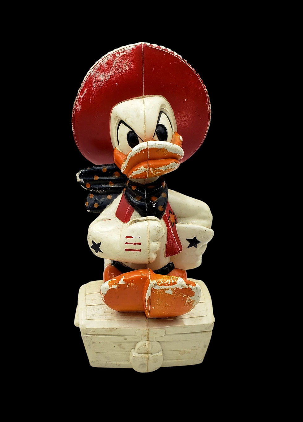 Box and lid show heavy age and storage wear: edge and corner splits, crushing, creases, tears, soiling and general roughness, but the graphics still display nicely.